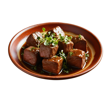 Our Beef & Gravy recipe is crafted with succulent beef chunks, rich in optimal animal fat content. The beef is slow-cooked in a savory meat broth to achieve perfect moisture. To this, we add fibrous vegetables and a small amount of rice, ensuring a balanced blend of nutrients.