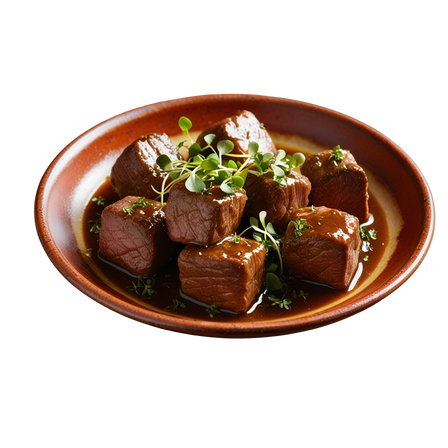 Our Beef & Gravy recipe is crafted with succulent beef chunks, rich in optimal animal fat content. The beef is slow-cooked in a savory meat broth to achieve perfect moisture. To this, we add fibrous vegetables and a small amount of rice, ensuring a balanced blend of nutrients.